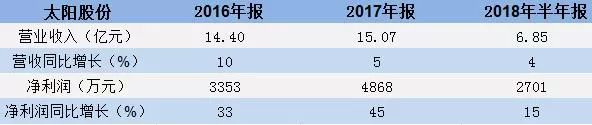 太陽股份核心管理層承諾2018年、2019年、2020年實(shí)現(xiàn)凈利潤分別不低于5000萬元、5500萬元、6000萬元,三年累計(jì)實(shí)現(xiàn)的凈利潤不低于1.65億元。